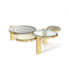 4 circular disc of glass and sintered stone are jointed together to produce a poetic coffee table